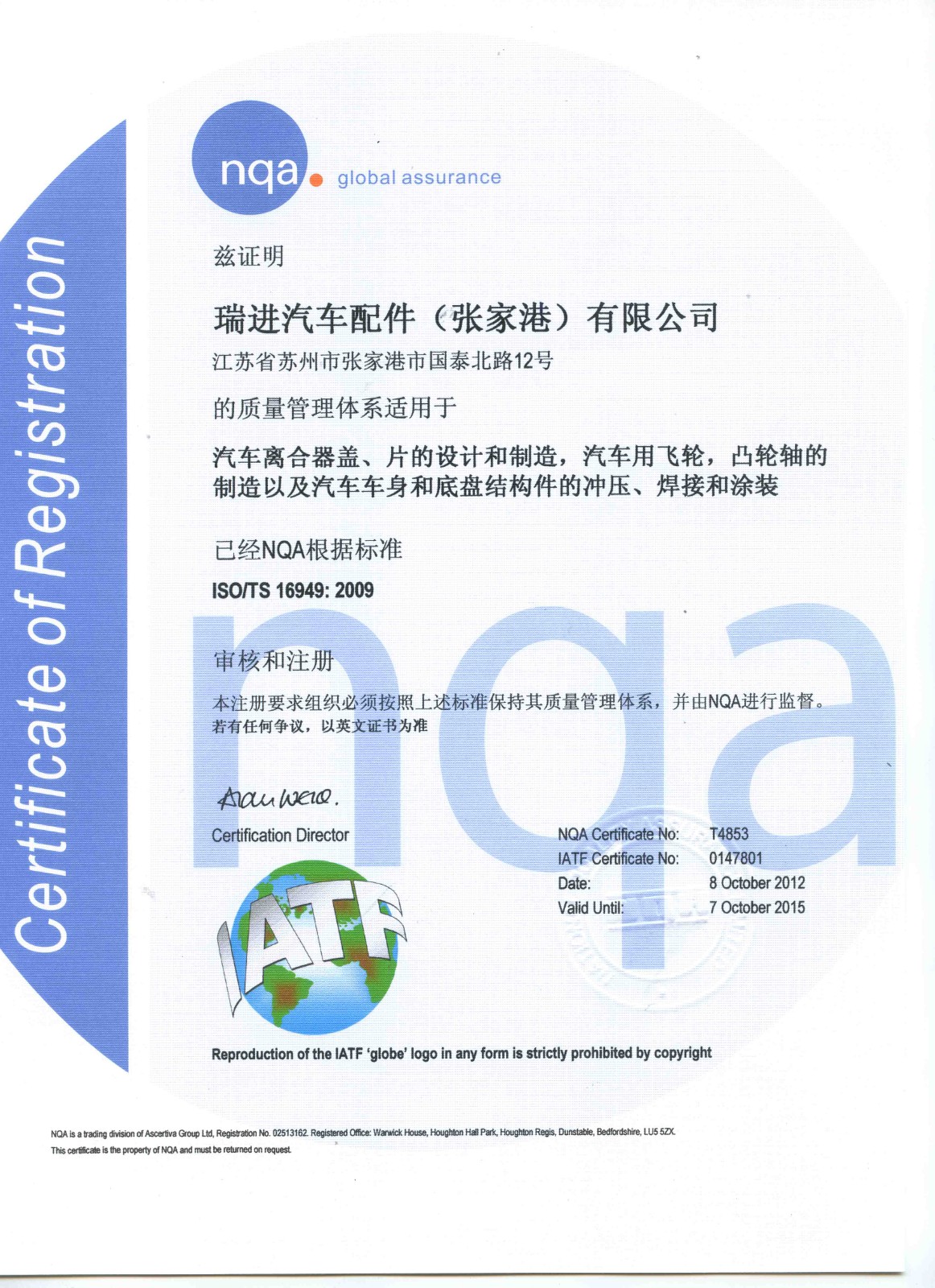 瑞进汽车配件(张家港)有限公司是一家韩国独资企业,成立于2002年9月23日,占地面积约16668平方米,项目总投资600万美元,公司技术力量雄厚,工艺先进,主要产品有:离合器,发动机支架,变速箱支架,油门踏板,离合器踏板,左右拉杆总成,发动机飞轮等。